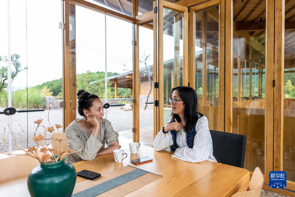 8月31日,林登的妻子瑾妮(右)向当地舞蹈家董继兰学习白族话。