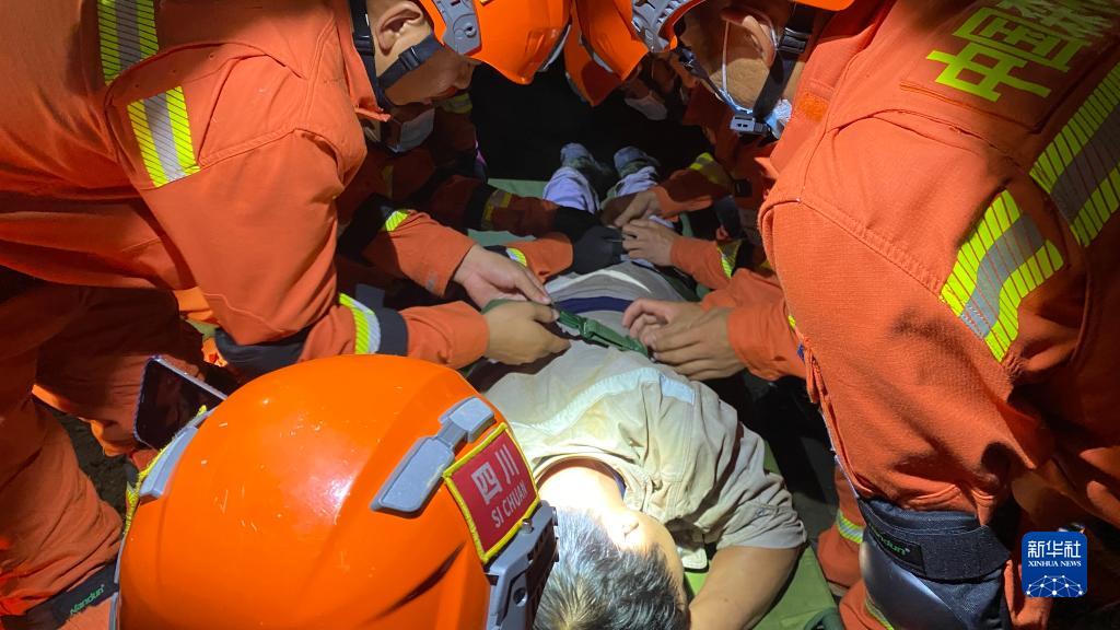 9月5日,在泸定县得妥镇新华村,四川森林消防总队甘孜支队救援人员通过橡皮艇转移受伤群众。