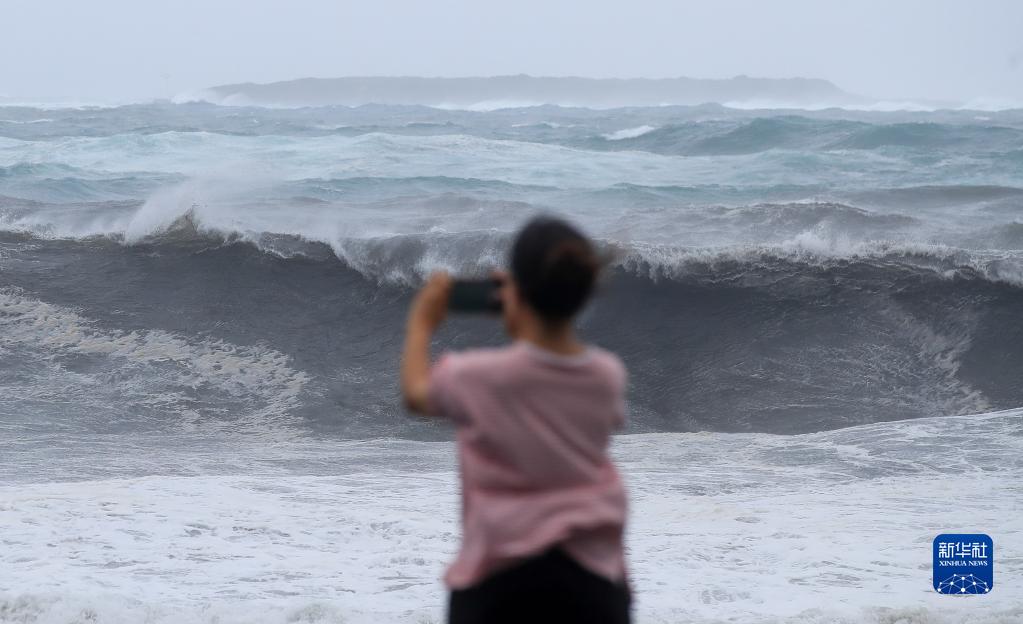 9月5日,市民在韩国济州岛西归浦市附近海域拍摄海浪。
