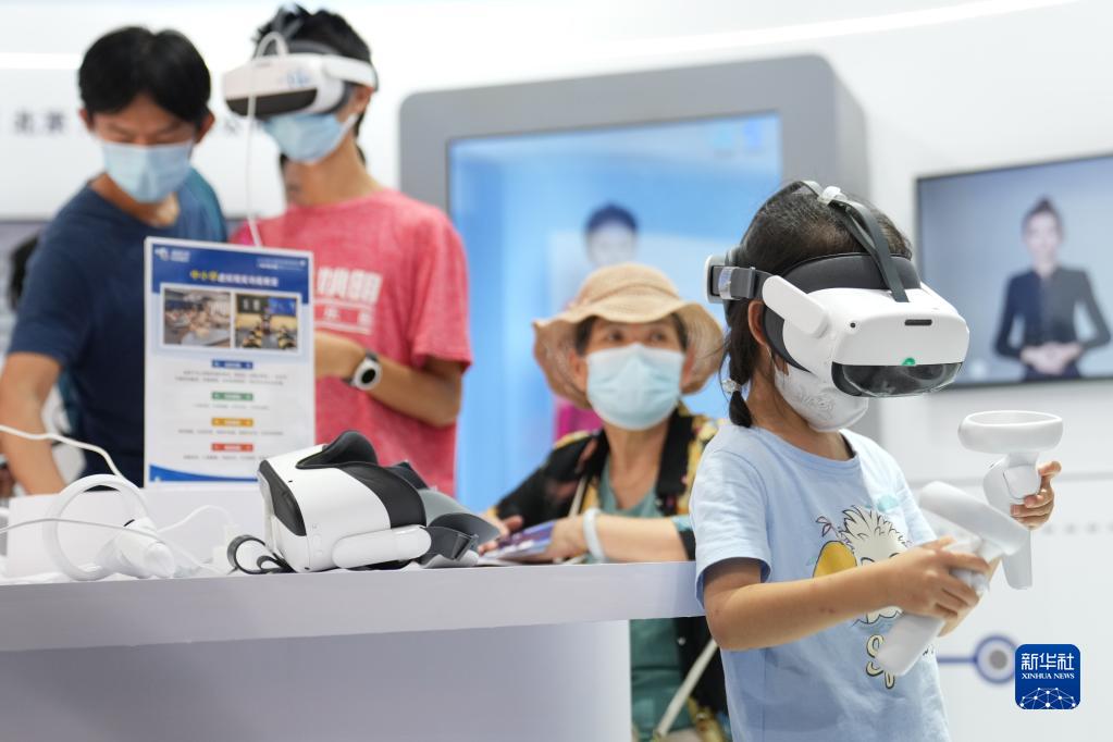 9月4日,在服贸会首钢园区文旅服务专题展,小朋友在进行VR体验。