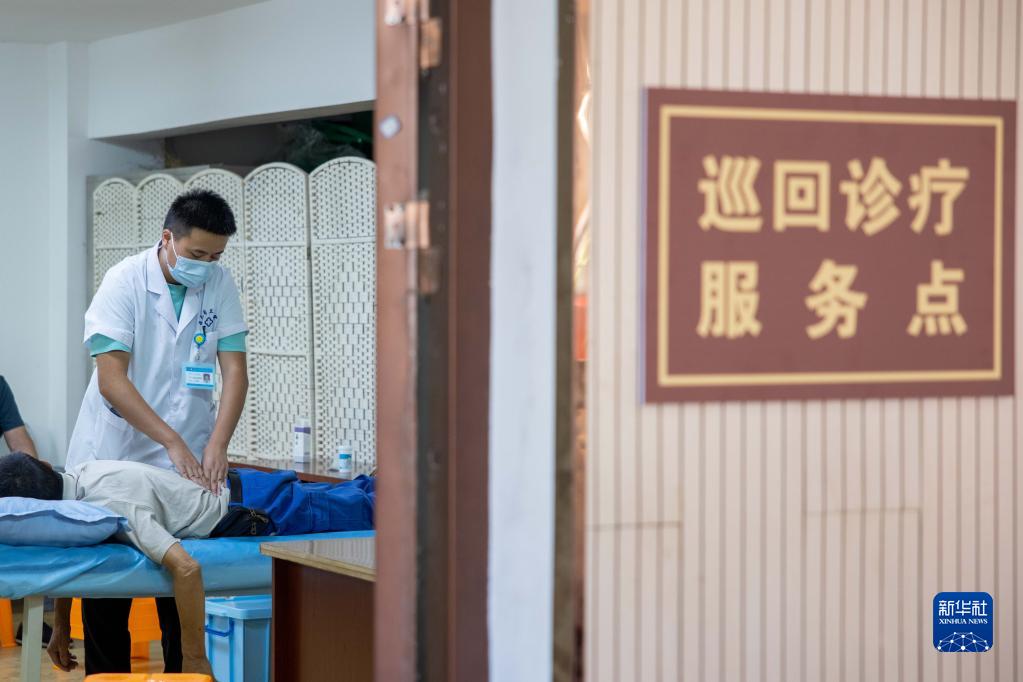 9月6日,参与巡回诊疗的医生为武山村村民做按摩推拿。
