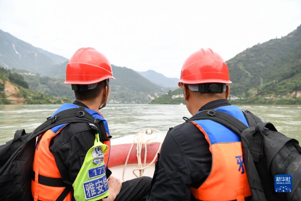 9月6日,救援人员搭乘快艇由石棉县新民乡前往王岗坪乡参与救援。