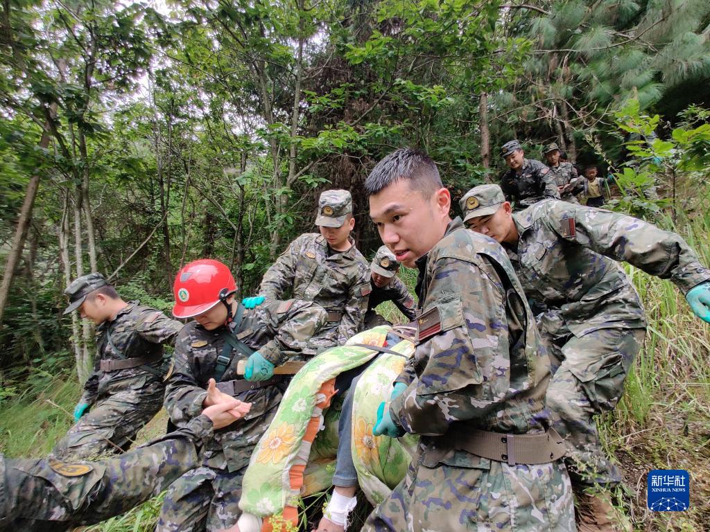 9月6日,武警四川总队雅安支队官兵在雅安市石棉县王岗坪乡转移受伤人员。新华社发(李熠 摄)