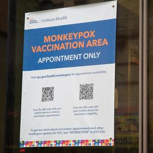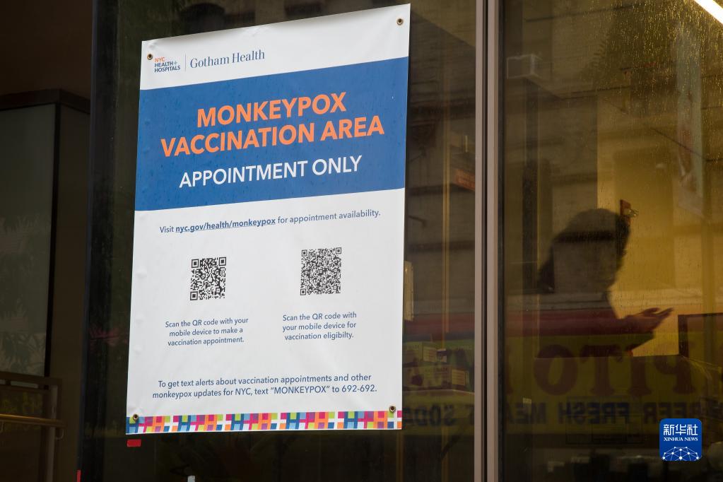 这是9月6日在美国纽约拍摄的一处猴痘疫苗接种点的告示。