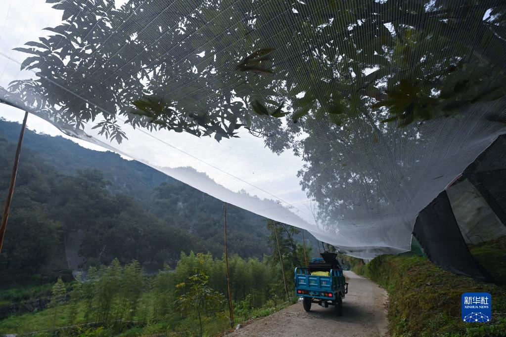 9月7日,淳安县临岐镇审岭脚村的山核桃林中铺满了采收网,方便村民捡掉落的山核桃果。