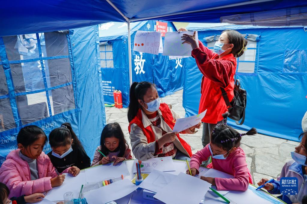 9月6日,四川省甘孜州泸定县磨西镇在地震救灾安置点里开设了一个青青儿童乐园,通过做游戏等方式对这里的孩子进行安抚。此后还将有更多青青儿童乐园在安置点里陆续设立。