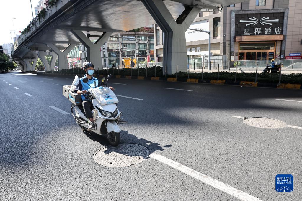 9月7日,配送员在配送生活物资。新华社记者 欧东衢 摄