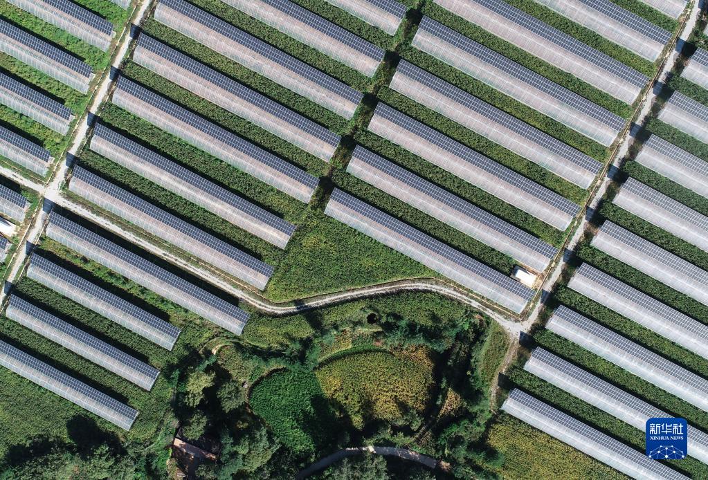 这是9月6日拍摄的位于麟游县九成宫镇丰塬村的光伏农业示范园(无人机照片)。