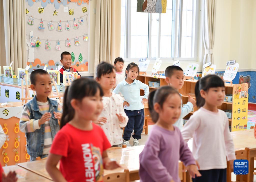 9月5日,小朋友在麟游县九成宫镇南坊新城移民搬迁安置社区配建的幼儿园内活动。