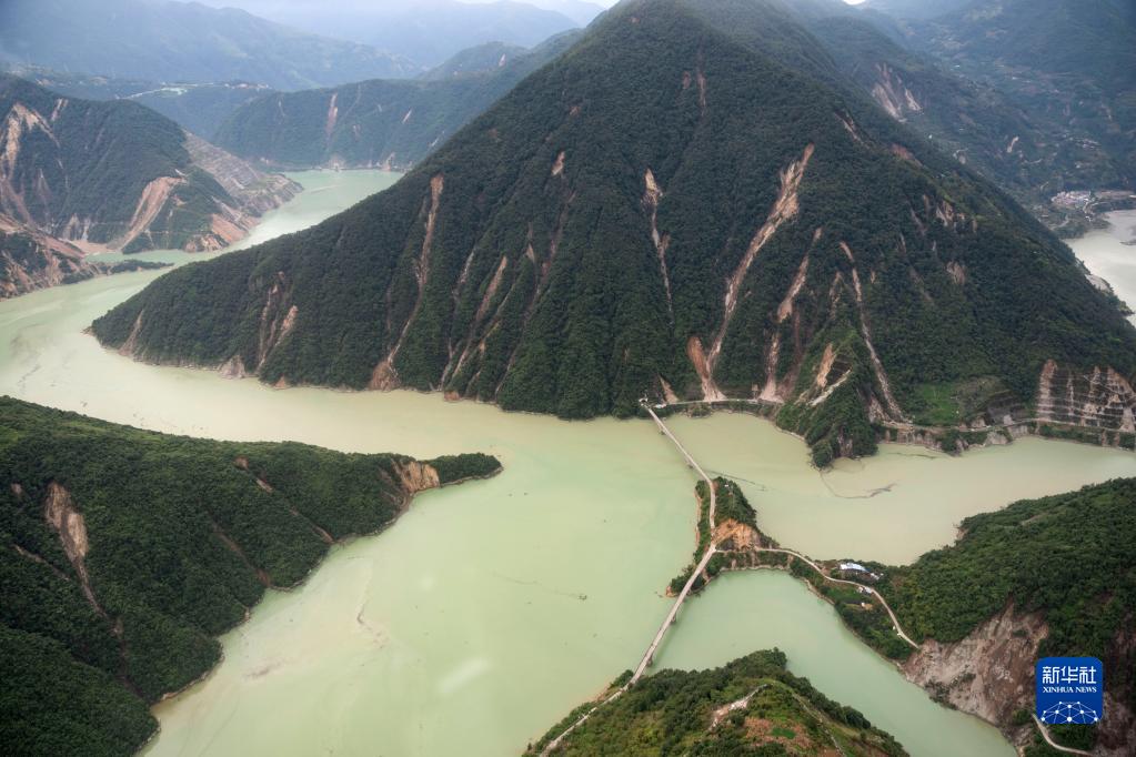 这是9月7日拍摄的雅安市石棉县王岗坪彝族藏族乡幸福村二组附近的照片,能看到山体多处滑坡(无人机照片)。