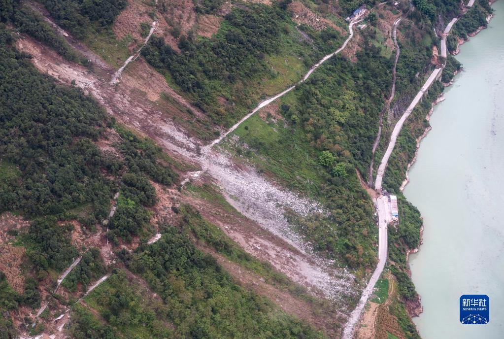 这是9月7日拍摄的雅安市石棉县王岗坪彝族藏族乡幸福村二组附近的照片,可看到山体多处滑坡(无人机照片)。