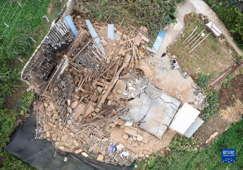 这是9月7日拍摄的雅安市石棉县王岗坪彝族藏族乡幸福村二组一户倒塌的民房(无人机照片)。