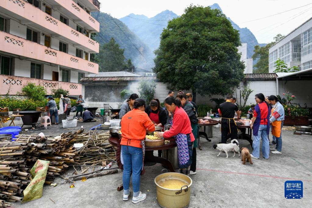 9月7日,在石棉县草科乡政府安置点内,当地群众在准备午饭。