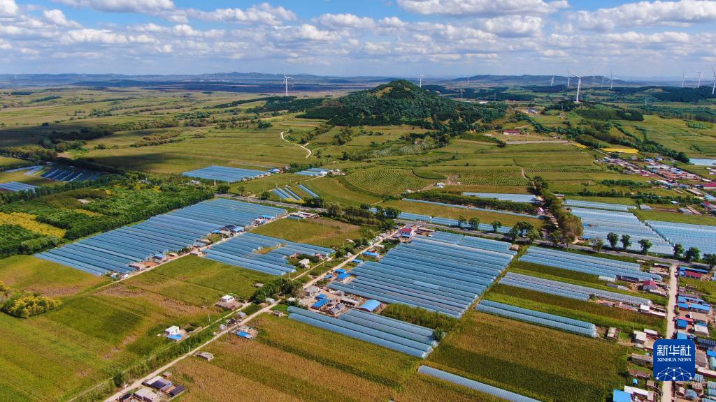 9月6日拍摄的丁家房镇葡萄大棚(无人机照片)。