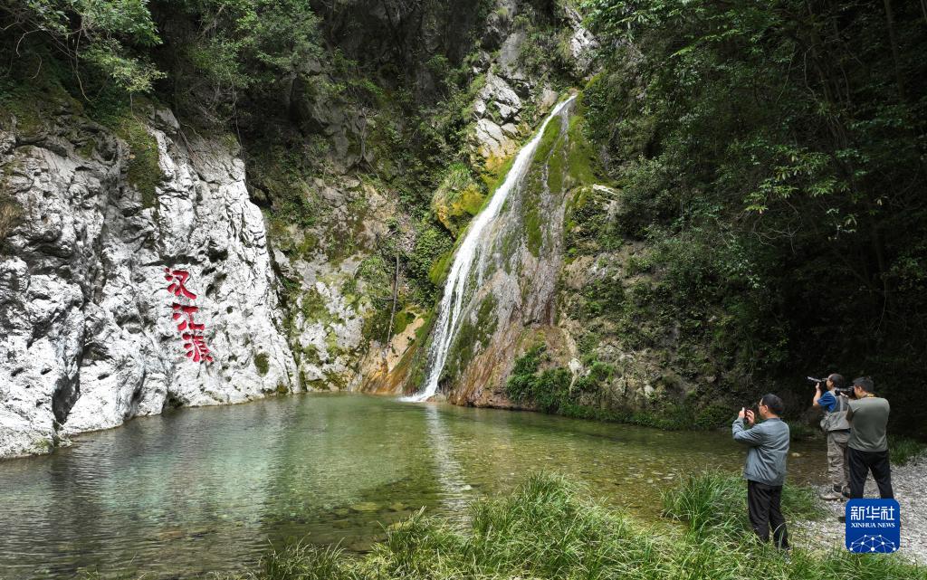 游客在位于宁强县汉源街道汉水源村的汉江源头拍照(9月6日摄)。此处原始森林、瀑布、碧潭、奇石、秀水交织,构成原生态自然风光景区。