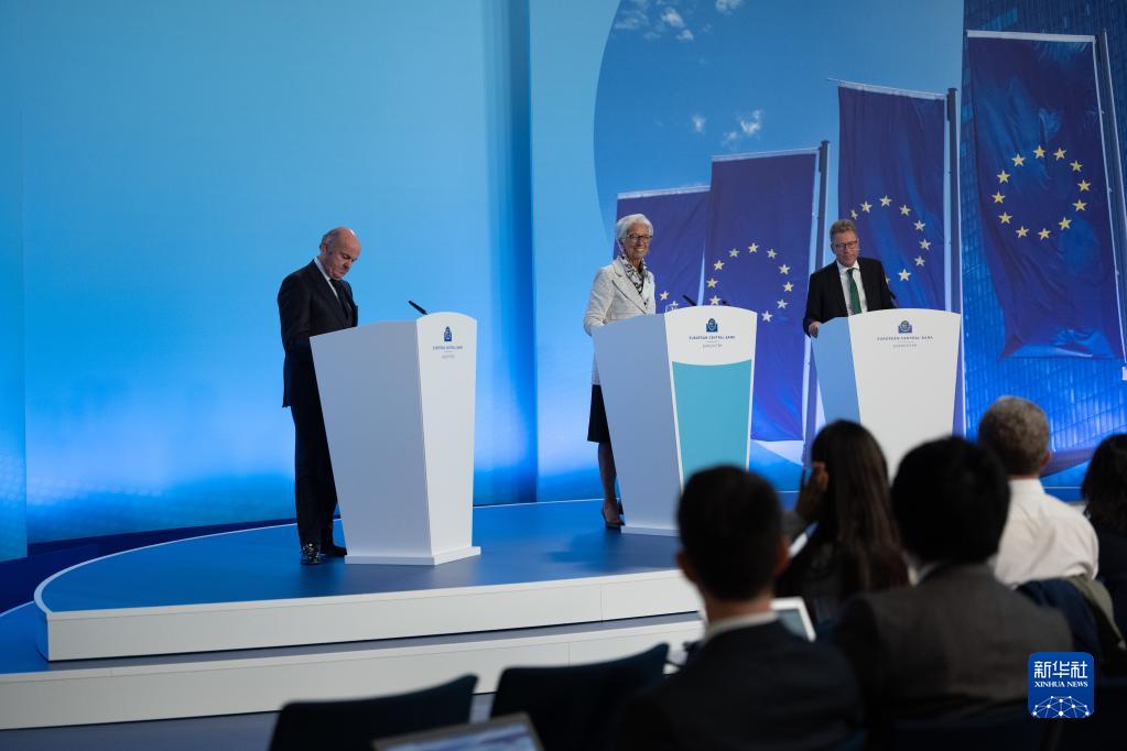 欧洲中央银行8日召开货币政策会议,决定将欧元区三大关键利率均上调75个基点,并表示可能继续加息,以进一步遏制通胀水平。这是自2002年实体欧元货币面世以来最大幅度加息。新华社发(欧洲央行供图)