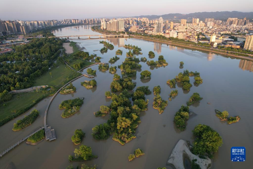 汉中市汉江湿地(5月16日摄,无人机照片)。