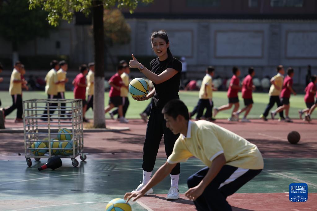 9月6日,于红俊在长沙市明德华兴中学给学生上体育课。