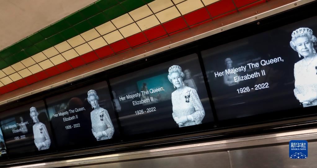 这是9月9日在英国伦敦的地铁站内拍摄的悼念英国女王伊丽莎白二世的图像。