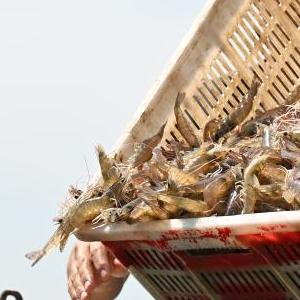 近日,位于天津滨海新区北塘街的约万亩虾塘迎来丰收季,村民们在虾塘围网、捕获、装车,将收货的鲜虾供应市场。
