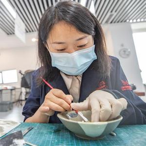 9月9日,参赛人员在进行陶瓷文物修复技能比赛。