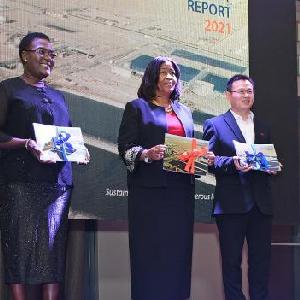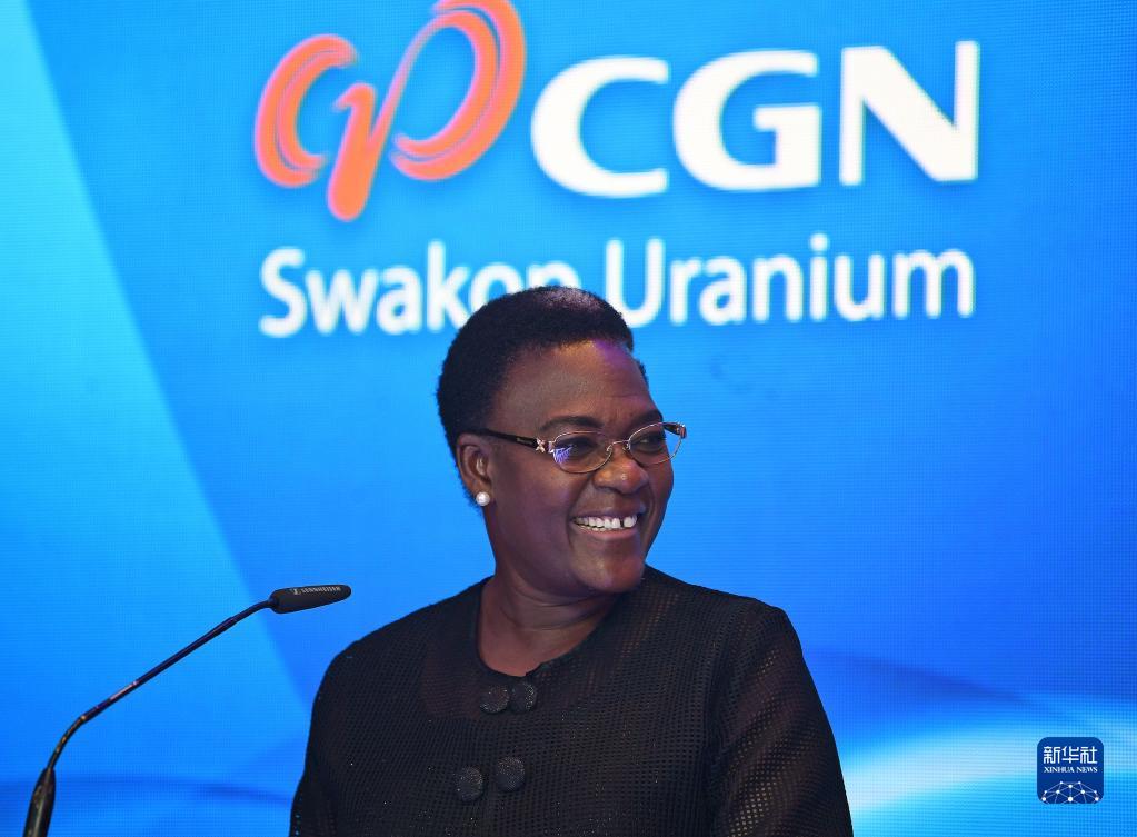 8月30日,在纳米比亚温得和克,纳米比亚矿业与能源部副部长科内利亚·希伦加出席斯科公司报告发布会。