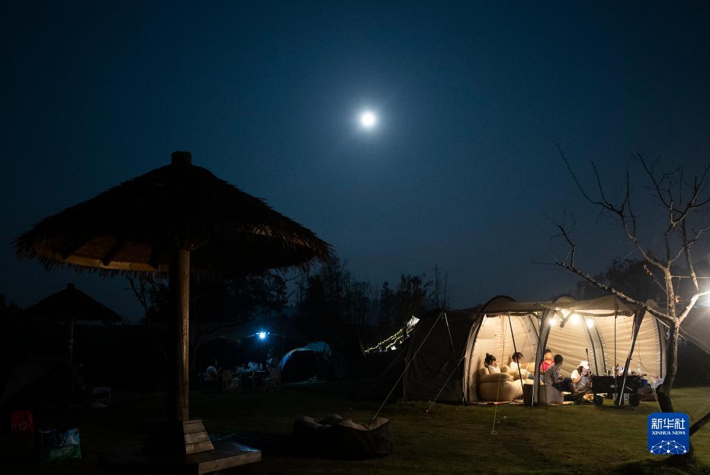 9月10日晚,游客在重庆市南川区黎香湖星空露营基地露营。新华社发(瞿明斌 摄)