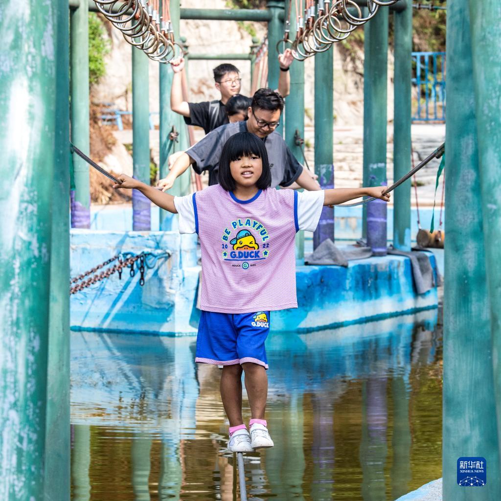 9月11日,游客在重庆市巴南区迎龙峡景区游玩。新华社记者 唐奕 摄
