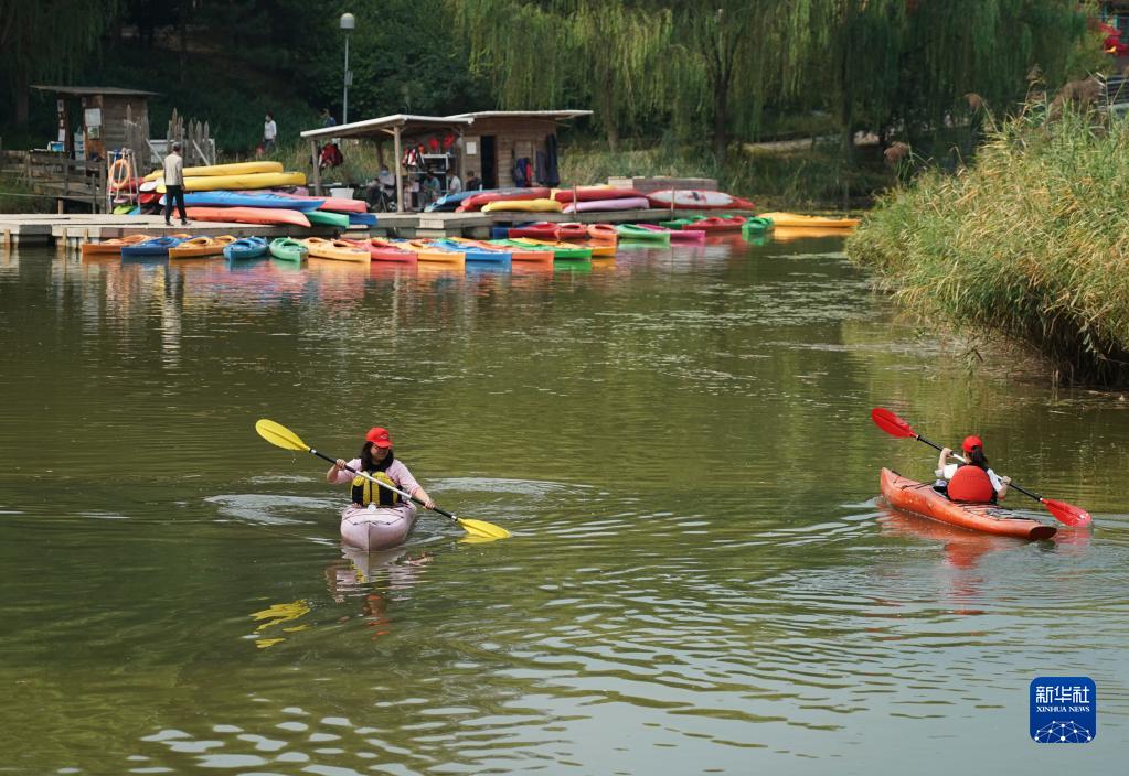 9月11日,市民在北京奥林匹克森林公园南园划船。新华社记者 任超 摄