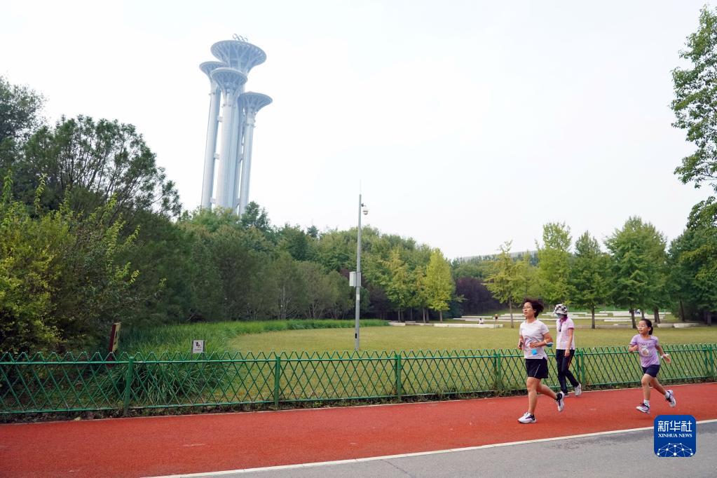 9月11日,市民在北京奥林匹克森林公园南园跑步健身。新华社记者 任超 摄