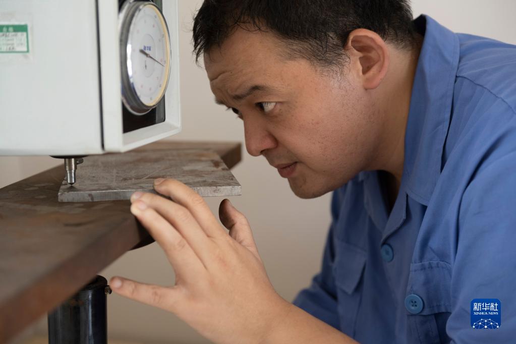 罗宇航在郑州工务机械段焊轨车间进行硬度试验(9月9日摄)。