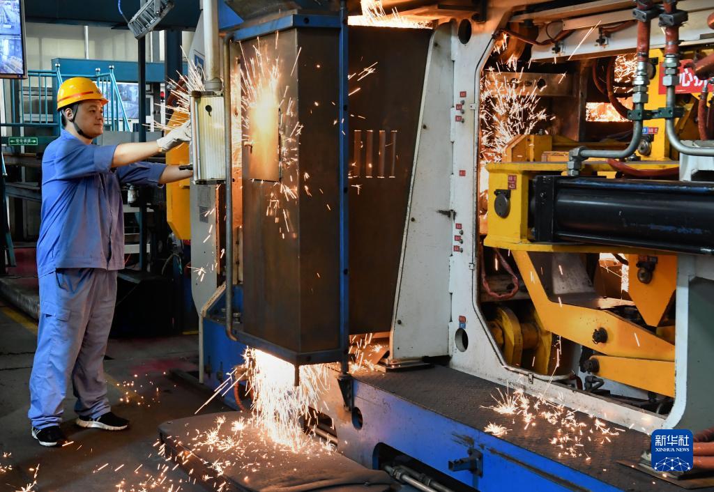 罗宇航在郑州工务机械段焊轨车间操作焊机进行闪光对焊(9月9日摄)。