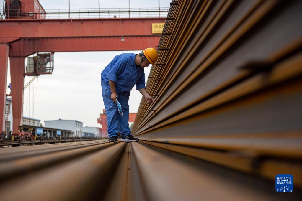 罗宇航在郑州工务机械段焊轨车间检查钢轨母材(9月9日摄)。