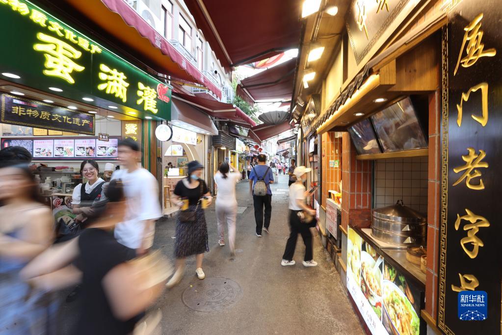 9月11日,游客在福建厦门鼓浪屿龙头路一带游玩。新华社发(曾德猛 摄)