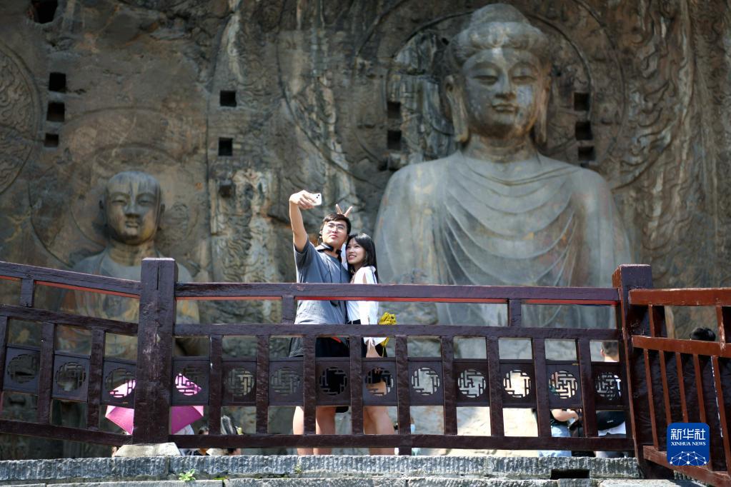 9月11日,游客在河南省洛阳市龙门石窟景区参观游览。新华社发(张怡熙 摄)