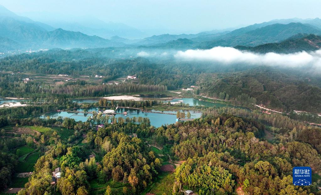 9月12日拍摄的云雾缭绕的西乡县峡口镇山林与茶园(无人机照片)。