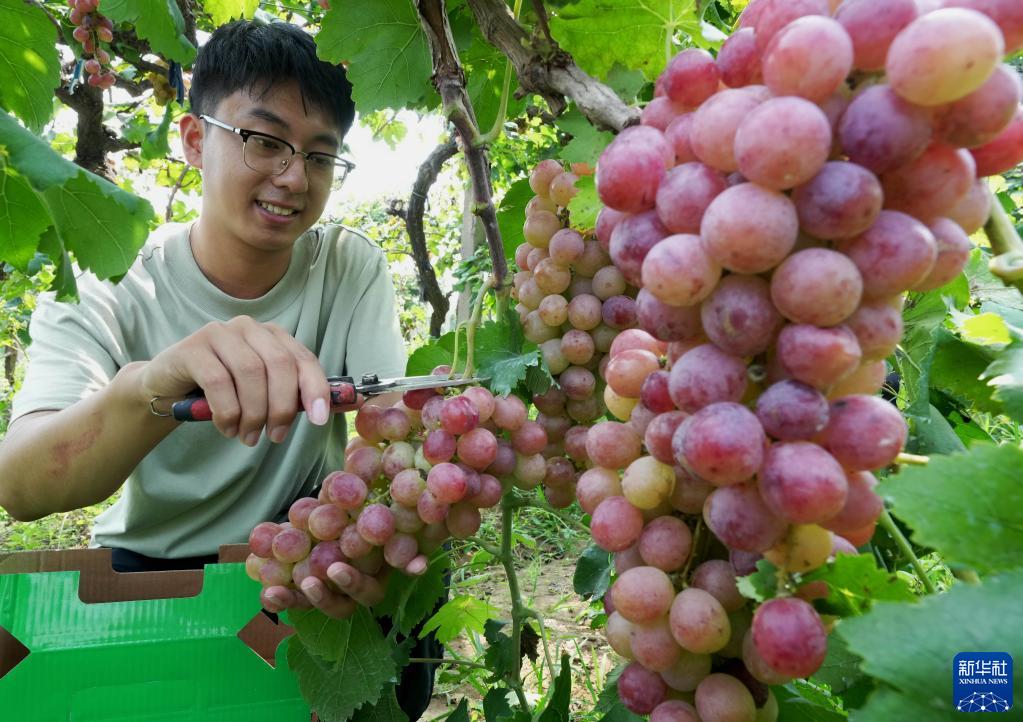 9月12日,河北省晋州市周家庄乡果农在果园采摘葡萄。