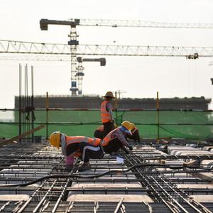 中秋假期期间,在长沙机场改扩建工程综合交通枢纽工程项目现场,施工人员坚守岗位,保障工程进展顺利。