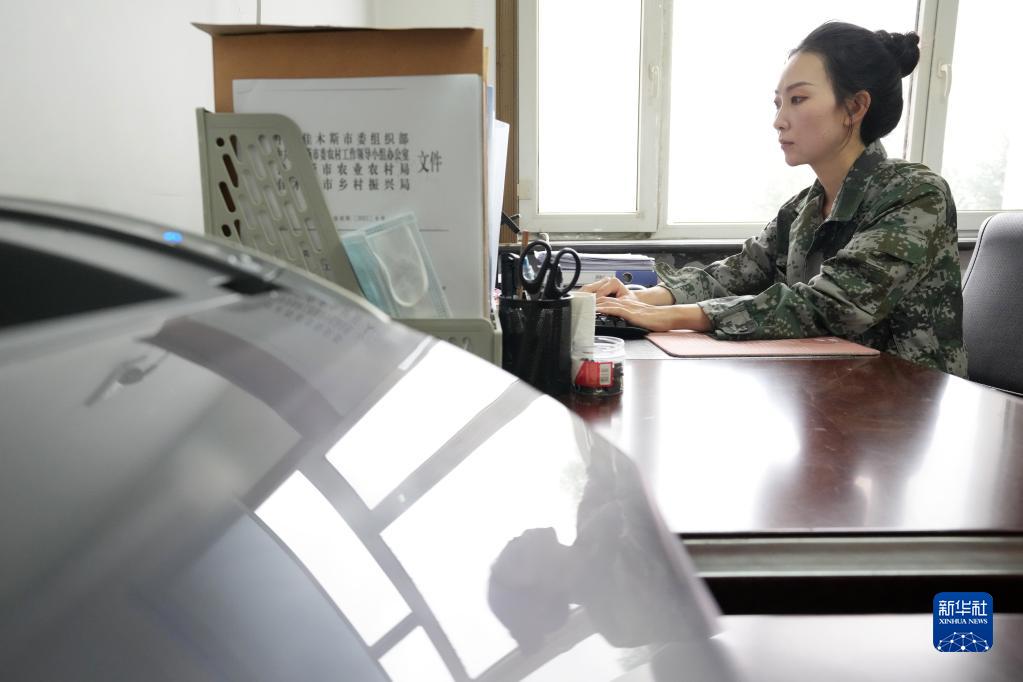 9月7日,尚美含在乌苏镇政府办公室内办公。