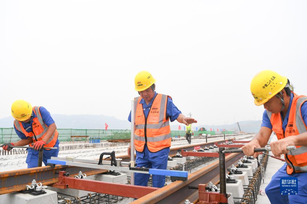9月15日,施工人员在重庆轨道交通18号线轨道工程一标段作业。