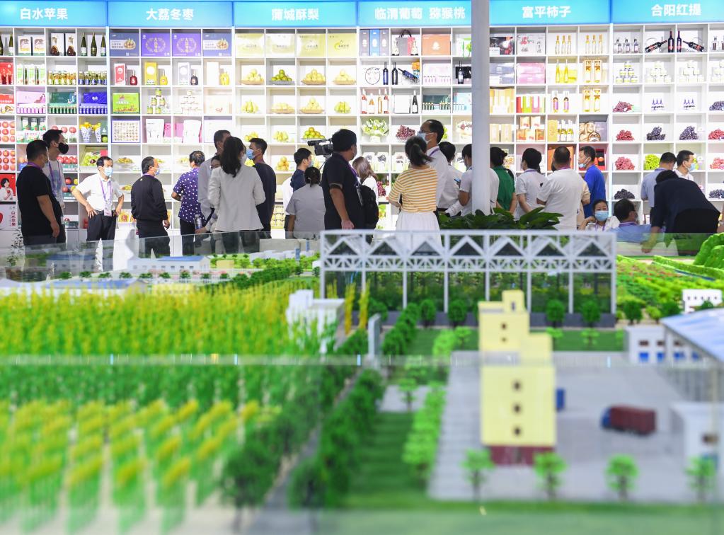 9月15日,在农业科技示范推广应用展馆,参观者了解特色农产品。