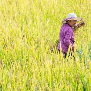 秋收时节,金黄色的水稻铺满山坡,稻农们利用晴好天气抢收稻谷,呈现出一派美丽的丰收画卷。如今,“花田贡米”已经成为当地人的主要增收来源。
