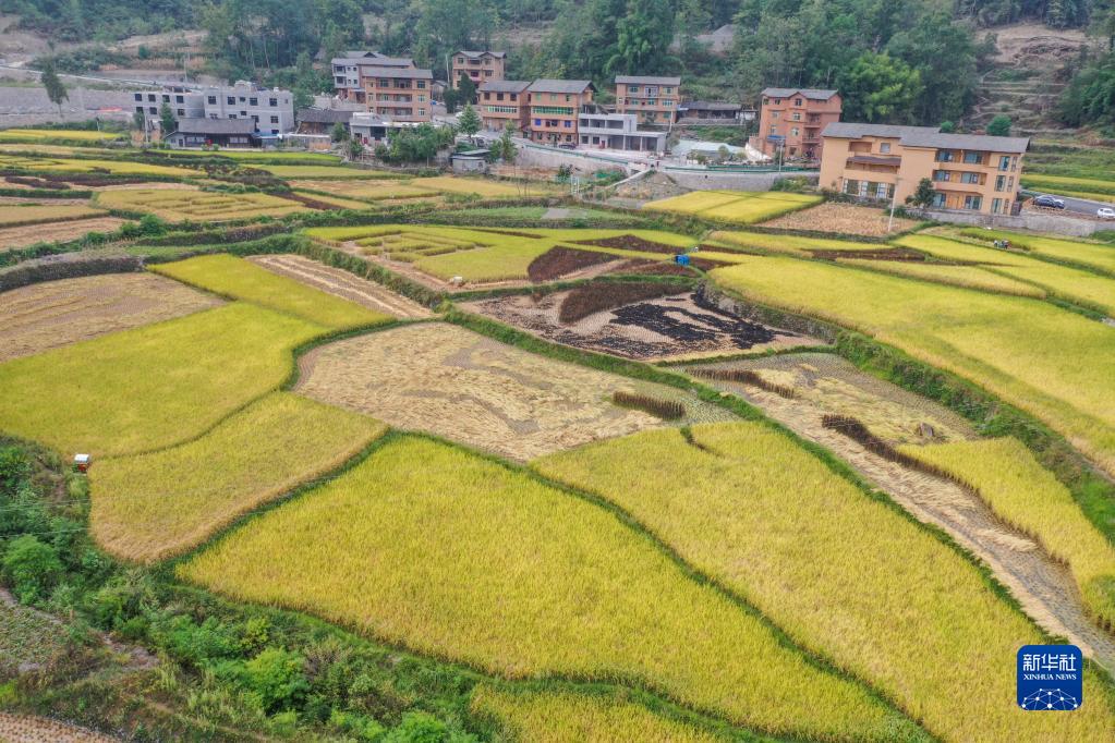 9月14日拍摄的重庆市酉阳土家族苗族自治县花田乡的梯田(无人机照片)。 新华社记者 唐奕 摄