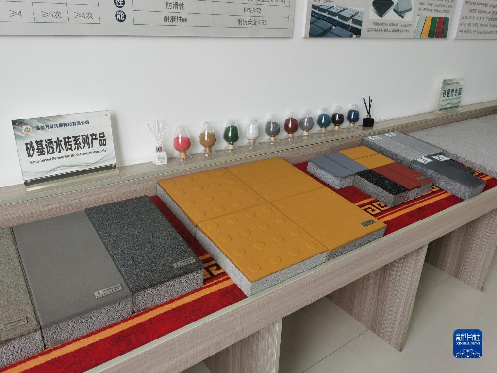 山西省武乡县泓晨万聚环保科技有限公司生产的新型透水砖(2022年8月24日摄)。
