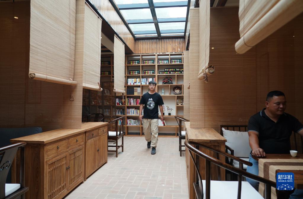 西安市蓝田县小寨镇董岭村一家改造后的民宿茶室(9月14日摄)。