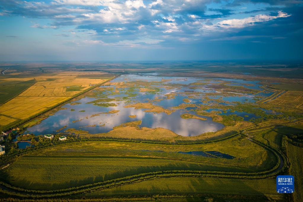 这是9月7日拍摄的富锦国家湿地公园风景(无人机照片)。