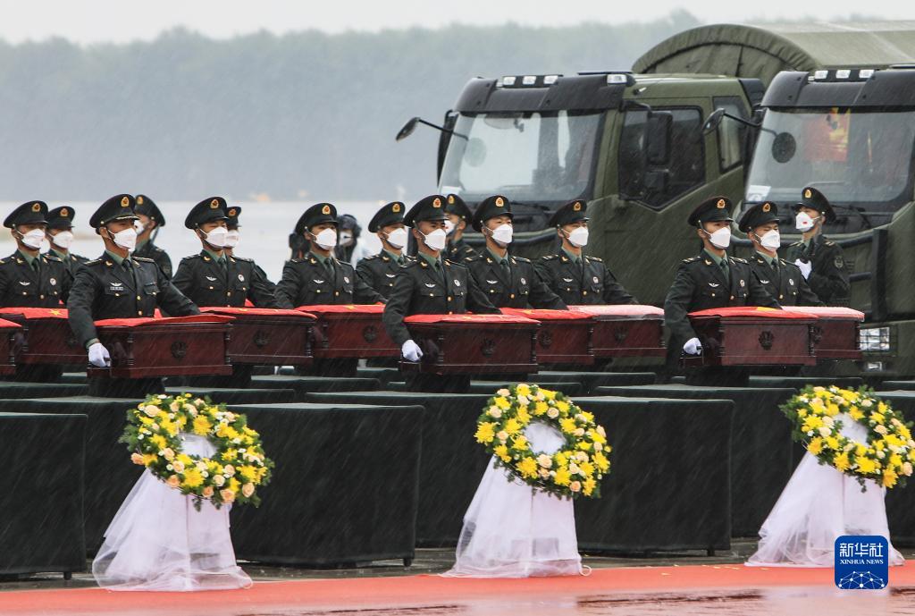 当日,第九批在韩中国人民志愿军烈士遗骸由我空军专机护送从韩国接回辽宁沈阳,88位志愿军烈士遗骸及相关遗物回到祖国。