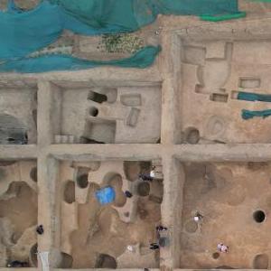 这是3月3日拍摄的郑州商城遗址商代中期高等级贵族墓葬区发掘现场(无人机照片)。