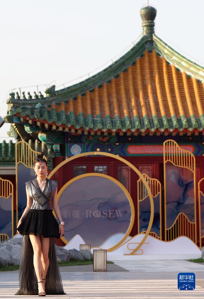 9月16日,模特在2022北京时装周“刘薇非遗作品大赏”时装秀上展示知名时装设计师刘薇设计的时装。