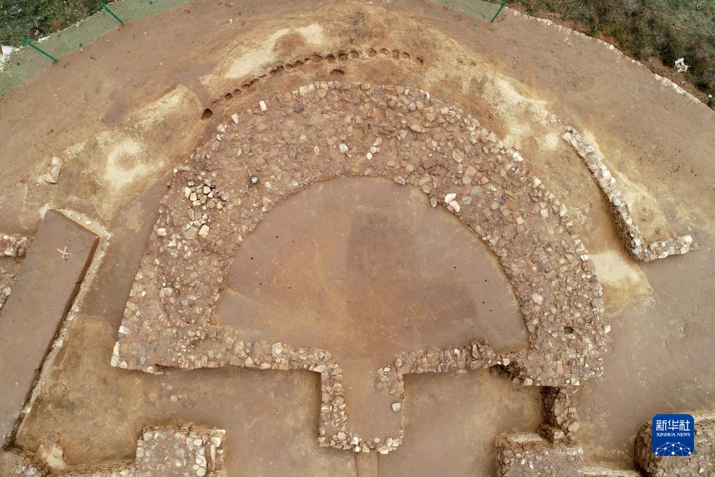 这是2021年10月8日拍摄的山西兴县碧村遗址东门址门口墩台遗迹(无人机照片)。